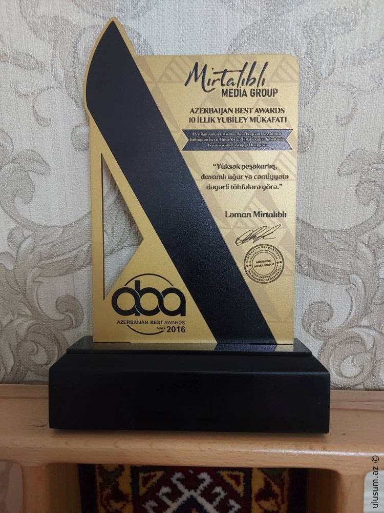 Tədbir çərçivəsində sənətkar MİRTALİBLİ MEDİA GROUP tərəfindən təqdim olunan Azerbaijan Best Awards – 10 illik yubiley mükafatına layiq görülüb. Mükafat ona yüksək peşəkarlığı, davamlı uğurları və cəmiyyətə dəyərli töhfələrinə görə təqdim edilib.