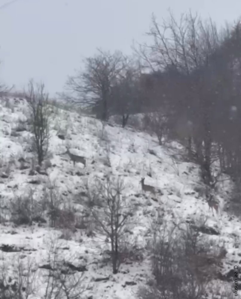 Əsrarəngiz təbiəti ilə göz oxşayan Laçının qış mövsümündə daha bir maraqlı görüntü müşahidə edilib. Ağ örpəyə bürünən dağların yamacında görünən cüyürlər diqqəti cəlb edib.