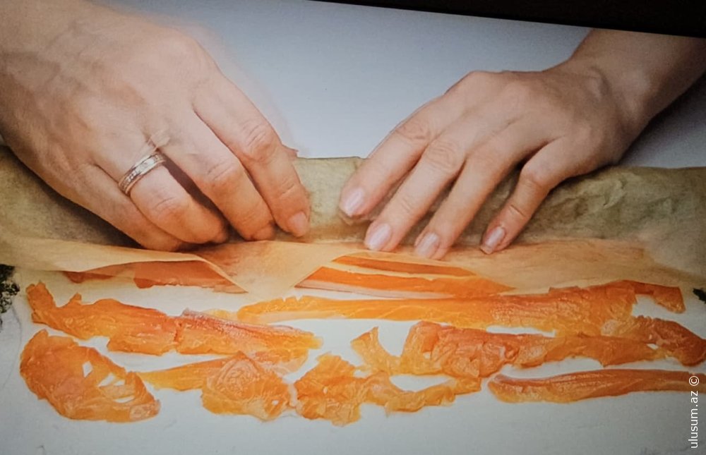 - 200 qram nazik doğranmış azduzlu qızılbalıq (və ya başqa balıq)