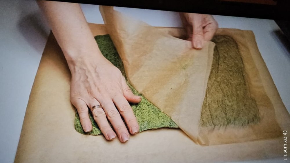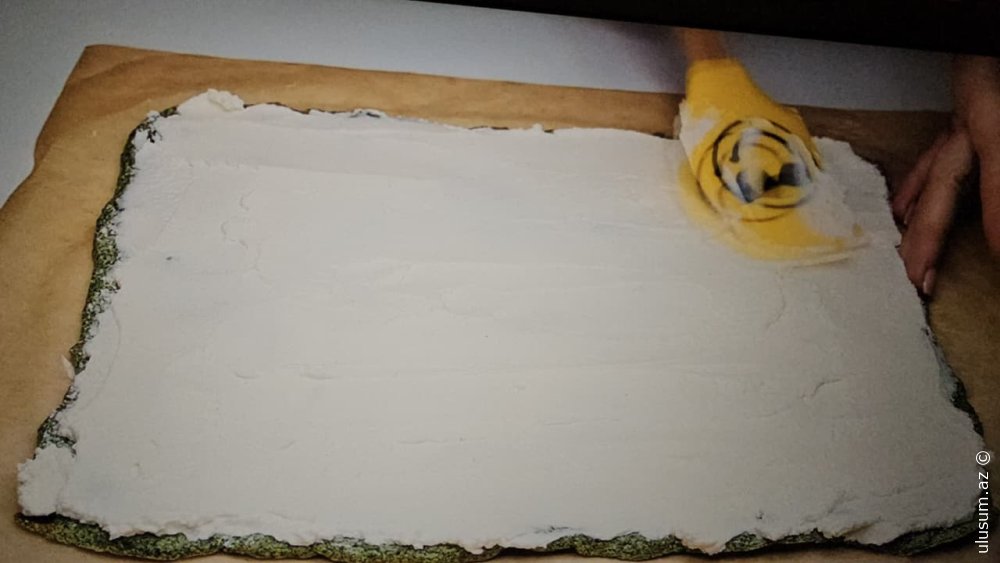 7. Əgər rulet bişəndən sonra quru və sərt çıxıbsa,çətinliklə kağızdan ayrılırsa o zaman üzərinə nəm dəsmal örtüb 5 dəqiqə gözlədin.
